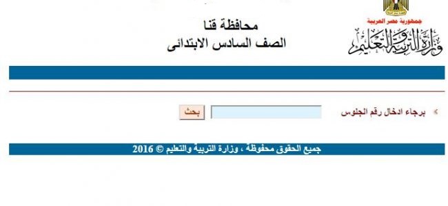 نتيجة الصف السادس الابتدائي محافظة قنا 2017 الترم الثاني برقم الجلوس