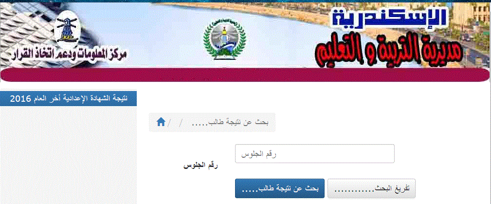 نتيجة الشهادة الإعدادية 2016 الترم الأول محافظة الإسكندرية برقم الجلوس
