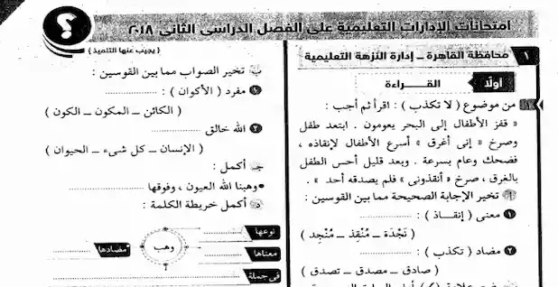 نماذج امتحانات لغة عربية الثانى الابتدائى من مختلف المحافظات طبقا لمواصفات الورقة الامتحانية الفصل الدراسى الثانى 2018