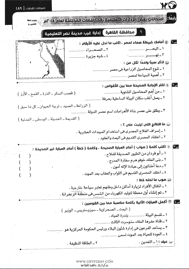 امتحانات سلاح التلميذ فى الدراسات للصف الرابع الابتدائى الترم الثانى 2019