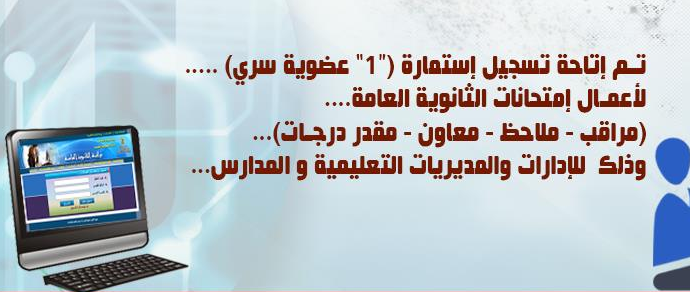 فتح باب التسجيل الإلكتروني لاستمارة 1 عضوية سري لأعمال امتحانات الثانوية العامة للعام الدراسي 2017 2016