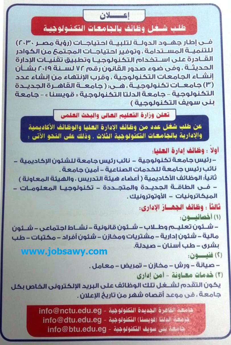 معهد القاهرة العالي للهندسة وعلوم الحاسب والادارة يعلن وظائف اكاديمية وادارية خالية وظائف اهرام الجمعة 10 07 2020