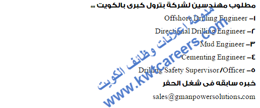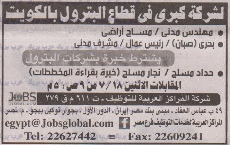 تعلن شركة عاملة في قطاع البترول بالكويت عن احتاجاتها الوظيفية من المقيمين في مصر الجمعة 15 7 2016