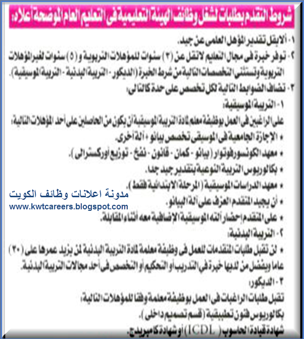 اعلان سفارة دولة الكويت بمصر وحاجتها لمعلمين ومعلمات مصريين كل التخصصات 2015 2016