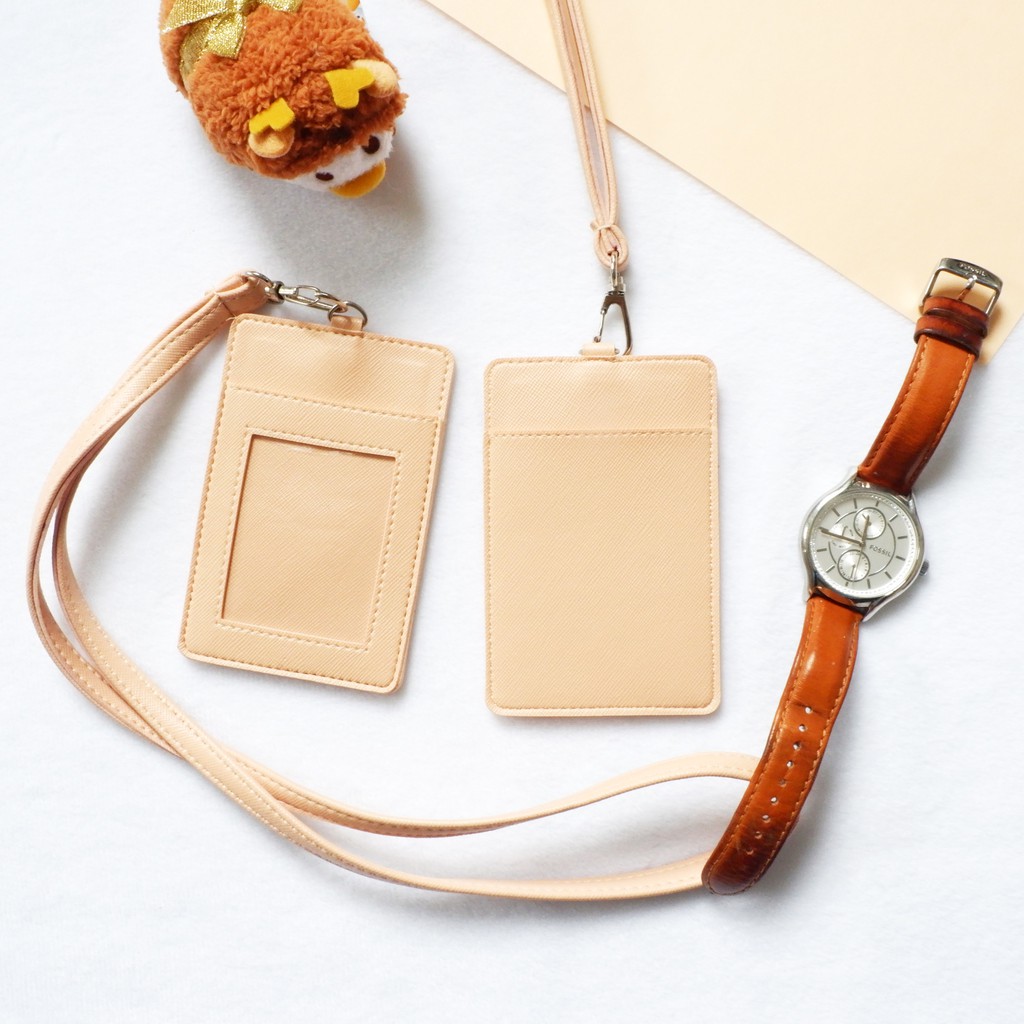 Custom Souvenir Gantungan Tempat Sarung Kalung Kartu Id Card Name Tag Nama Holder Kulit Cream Shopee Indonesia